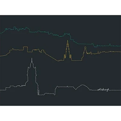 Wee Blue Coo Edinburgh Scotland Cityscape Skyline Line Drawing Art Print Poster Wall Decor 12X16 Inch