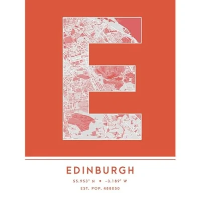 Wee Blue Coo Edinburgh Scotland United Kingdom City Map Orange Colour Block Modern Typography Stylish Letter Unframed Word Wall Art Print Poster for Home Décor CITYMAP1