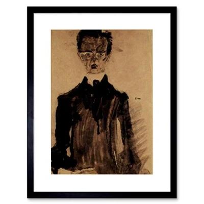 Wee Blue Coo Egon Schiele Self Portrait In A Black Robe Old Master Framed Wall Art Print