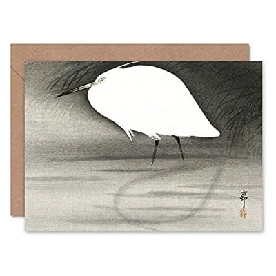 Wee Blue Coo Egret Ohara Koson Greeting Card With Envelope Inside Premium Quality