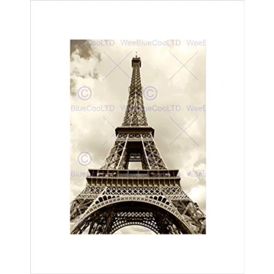Wee Blue Coo Eiffel Tower Sepia Paris France Iconic Picture Wall Art Print