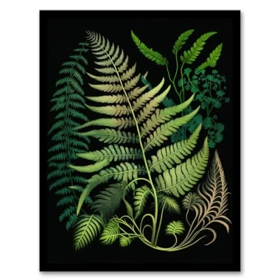 Wee Blue Coo Elegant Fern Fronds Botanical Nature Foliage Artwork Green on Black Framed Wall Art Print A4