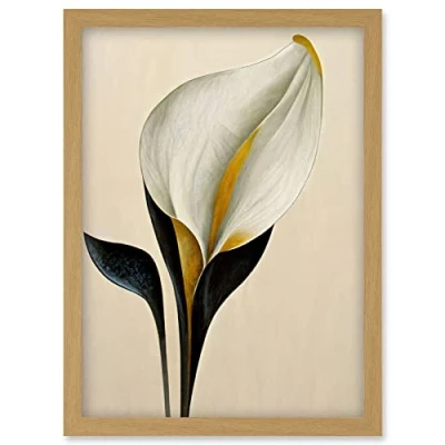 Wee Blue Coo Elegant Modern Calla Lily Black Gold Beige Artwork Framed Wall Art Print A4