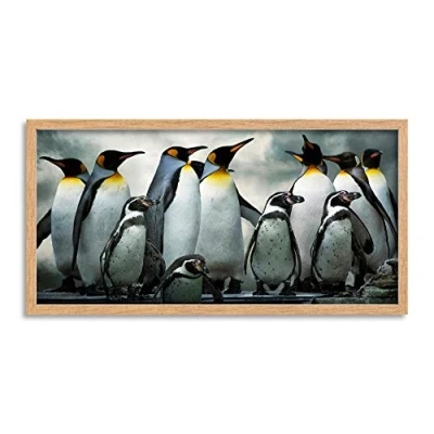 Wee Blue Coo Emperor Penguins Chick Bird Long Panel Framed Wall Art Print