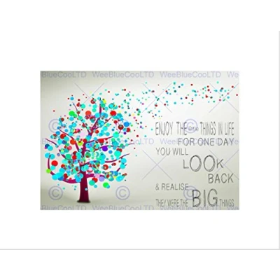 Wee Blue Coo Enjoy Little Things Life Bubble Tree Quote Typography Wall Art Print