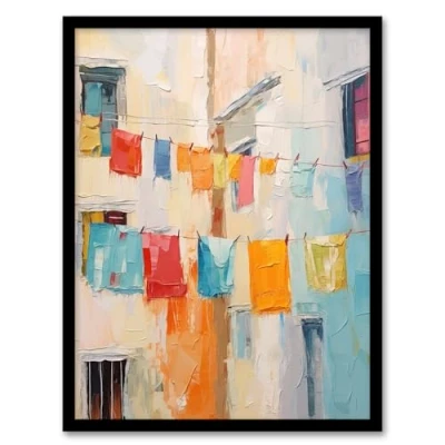 Wee Blue Coo Every Day Is Laundry Multicoloured Artwork Framed Wall Art Print A4