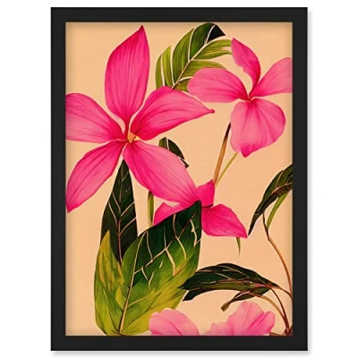 Wee Blue Coo Exotic Pink Plumeria Flower Plant Blooms Watercolour Pencil Illustration Artwork Framed Wall Art Print A4