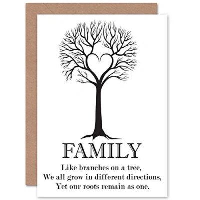 Wee Blue Coo FAMILY ROOTS QUOTE MOTIVATION TYPOGRAPHY B&W HE TREE GREETINGS CARD