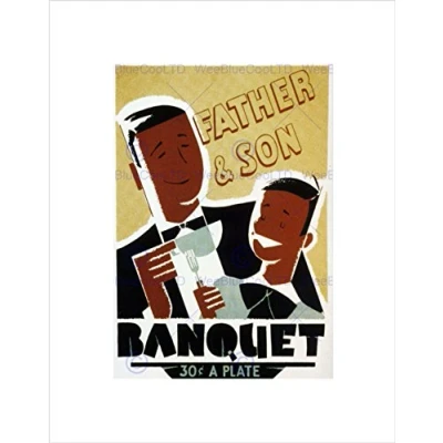 Wee Blue Coo Father Son Food Banquet USA Family Vintage Retro Advert Wall Art Print