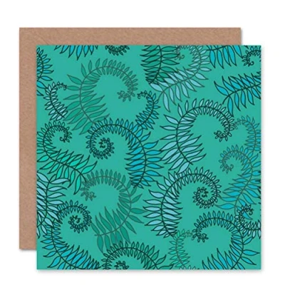 Wee BLUE Coo FERN GREEN ILLUSTRATION PATTERN PLANT BLANK GREETINGS BIRTHDAY CARD
