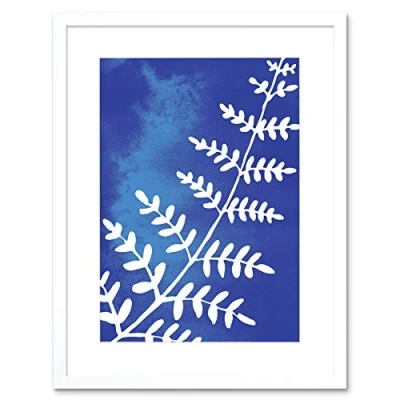 Wee Blue Coo Fern Leaves Watercolour Cobalt 12x16 Framed Wall Art Print