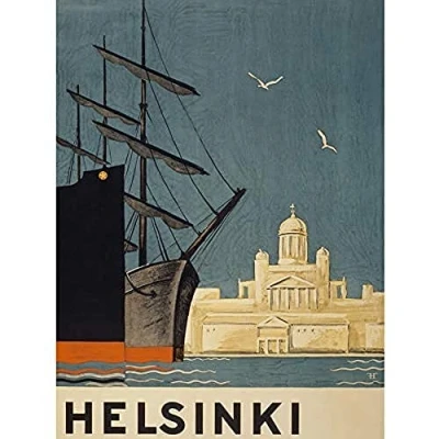 Wee Blue Coo Finland Helsinki Cathedral Ships Unframed Art Print Poster Wall Decor 12X16 Inch