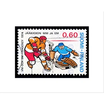 Wee Blue Coo Finland Postage Stamp Vintage Ice Hockey Philately Wall Art Print