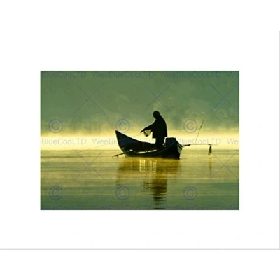 Wee Blue Coo Fisherman Fishing Lake Green Yellow Picture Wall Art Print