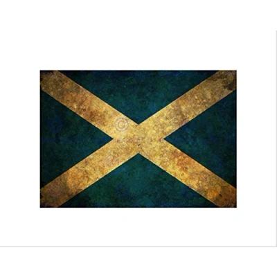 Wee Blue Coo Flag National Scotland Saltire White Stressed Grunge Wall Art Print