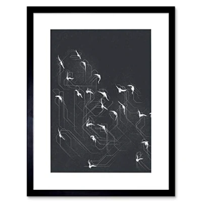 Wee Blue Coo Flock Of Birds Silhouette Abstract Framed Wall Art Print