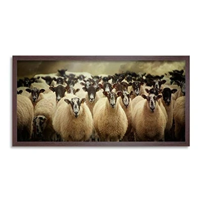 Wee Blue Coo Flock Sheep Looking Forward Long Panel Framed Wall Art Print