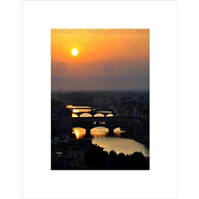 Wee Blue Coo FLORENCE SUNSET BRIDGE BLACK FRAME FRAMED ART PRINT PICTURE MOUNT B12X8751