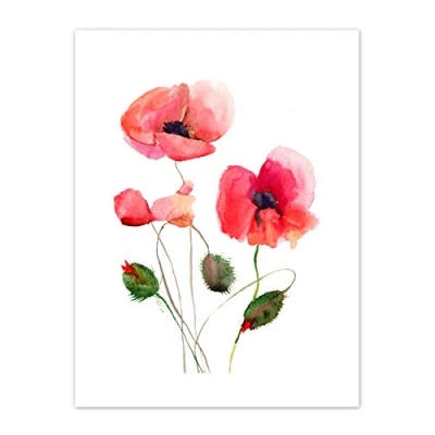 Wee Blue Coo Flower Poppies Watercolour Art Print Canvas Premium Wall Decor Poster