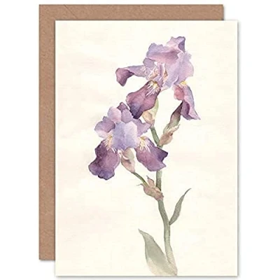 Wee Blue Coo Flower Violet Iris Watercolour Greeting Card With Envelope Inside Premium Quality
