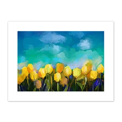 Wee Blue Coo Flower Yellow Tulips Painting Art Print Canvas Premium Wall Decor Poster