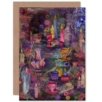 Wee Blue Coo FLOWERS, CANDLES AND TEACUPS BLANK GREETINGS CARD by CLAIRE SAUNDERS