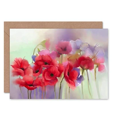 Wee Blue Coo Flowers Dreamy Poppies Greeting Card With Envelope Inside Premium Quality