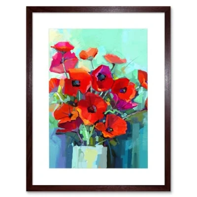 Wee Blue Coo Flowers Red Bouquet Vase Art Print Framed Poster Wall Decor 12X16 Inch