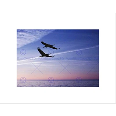 Wee Blue Coo Flying Swans Silhouette Sunset Art Picture Wall Print