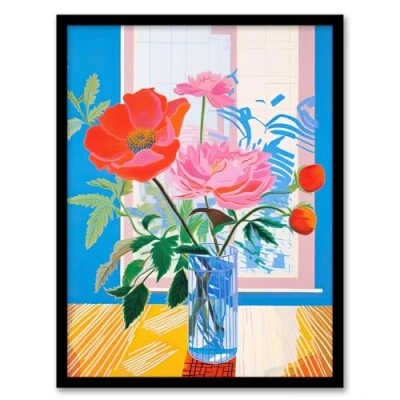 Wee Blue Coo Formidable Florals Acrylic Painting Wildflowers in Glass Vase Vibrant Orange Pink Artwork Framed Wall Art Print 18X24 Inch