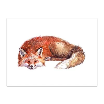 Wee Blue Coo Fox Sleeping Watercolour Art Print Canvas Premium Wall Decor Poster