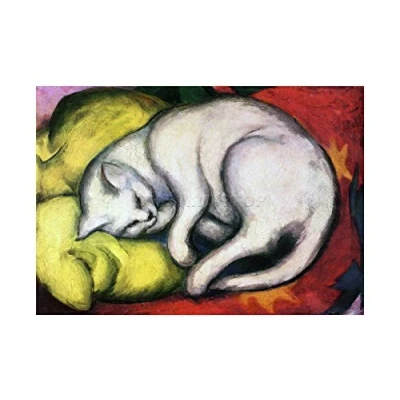 Wee Blue Coo Franz Marc Cat On Yellow Cushion Painting Picture Wall Art Print
