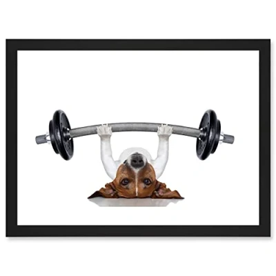 Wee Blue Coo Funny Photo Jack Russell Dog Personal Trainer Weight Lifter Artwork Framed Wall Art Print A4