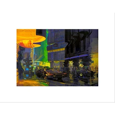 Wee Blue Coo Future Vision Cityscape Neon Street Car Building Light Wall Art Print