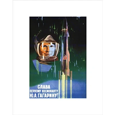 Wee Blue Coo GAGARIN COSMONAUT ROCKET SPACE USSR BLACK FRAMED ART PRINT B12X4469