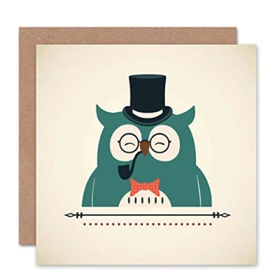 Wee Blue Coo GENTLEMAN OWL PIPE CARTOON BLANK GREETINGS BIRTHDAY CARD ART