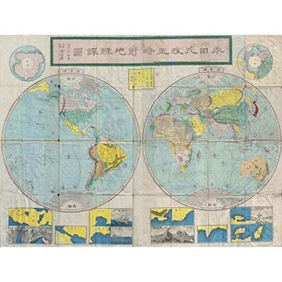 Wee Blue Coo Geography Map Illustrated Antique Meiji Japanese World Art Print Poster Wall Decor 12X16 Inch
