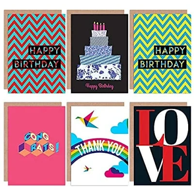 Wee Blue Coo Geometric Bright Bold Quirky Love All Occasions Various Assorted Blank Greeting Cards With Envelopes includes Birthday Congratulations Thank You Pack of 6