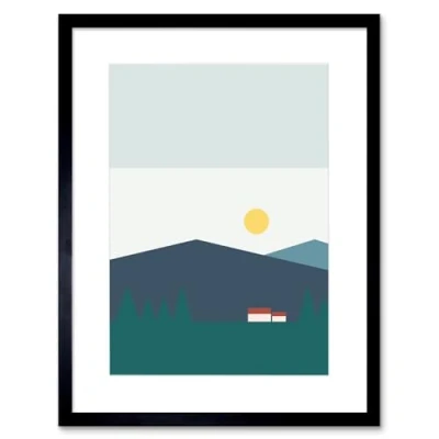 Wee Blue Coo Geometric Shapes Highland Scotland Home Hills Sun Scottish Framed Art Print