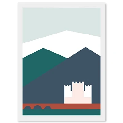 Wee Blue Coo Geometric Shapes Scotland Eilean Donan Castle Kyle Lochalsh Artwork Framed Wall Art Print A4