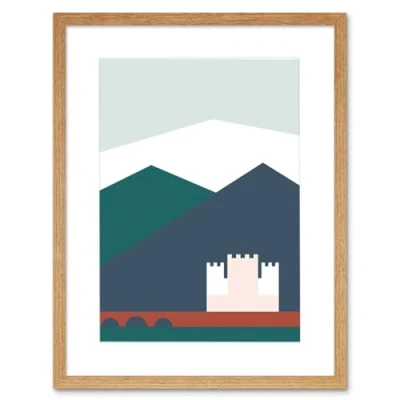 Wee Blue Coo Geometric Shapes Scotland Eilean Donan Castle Kyle Lochalsh Framed Art Print
