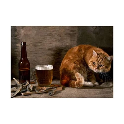 Wee Blue Coo Ginger Cat Fish And Beer Lager Photo Wall Art Print