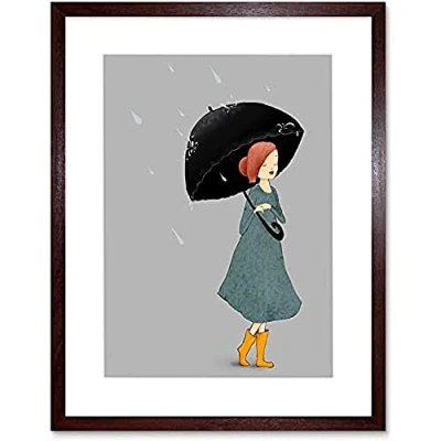 Wee Blue Coo Girl In Rain Illustration Unframed Art Print Poster Wall Decor 12x16 inch