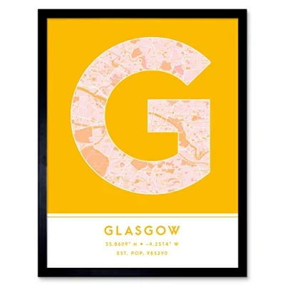 Wee Blue Coo Glasgow Scotland United Kingdom City Map Yellow Colour Block Modern Typography Stylish Letter Framed Word Wall Art Print Poster for Home Décor CITYMAP1