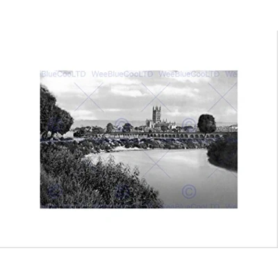 Wee Blue Coo Gloucester Cathedral From River England Old BW Wall Art Print