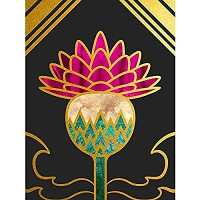 Wee Blue Coo Gold Edge Scottish Thistle Flower Illustration Sc Otland Large Art Print Poster Wall Decor 18x24 inch