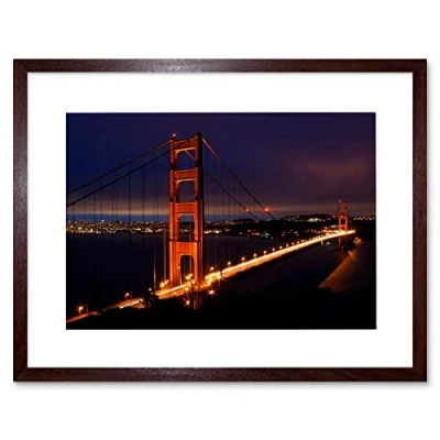 Wee Blue Coo Golden Gate Bridge Night San Francisco Picture Framed Wall Art Print