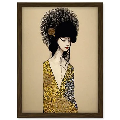 Wee Blue Coo Golden Geisha Girl Abstract Elegant Painting Artwork Framed A3 Wall Art Print