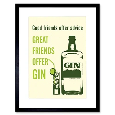 Wee Blue Coo Good Friends Advice Great Gin Drink Picture Framed Wall Art Print