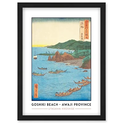 Wee Blue Coo Goshiki Beach Awaji Province Utagawa Hiroshige Japanese Woodblock Classic Collection Artwork Framed Wall Art Print A4